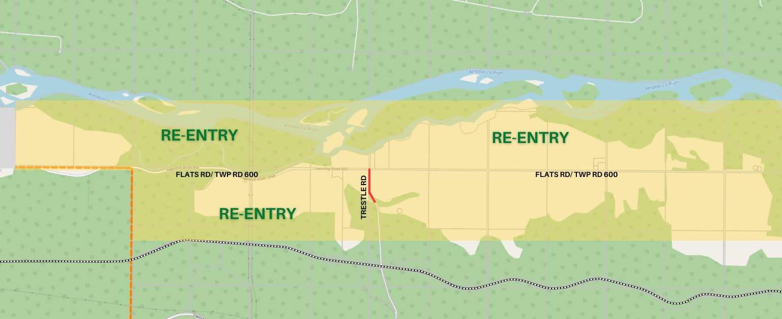 - Residents on Flats Rd/Twp Rd 600, east of Trestle Rd, may return